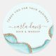 Sticker Rond Pailleté Doré Élégant Marbre Bleu Agate Moderne Ch