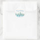 Sticker apaisant en hiver Forêt d'aquarelle Script Noël Vacances. Aquarelle des arbres en hiver, forêt d'hiver avec neige aux couleurs bleu et vert. Le design est calme et paisible avec des vacances paisibles dans un script élégant.