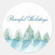 Sticker Rond Paisible Forêt d'hiver Aquarelle Script Noël