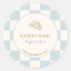 Sticker Rond Pale Blue Checkered Cafe Croissant Bakery