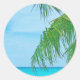 Sticker Rond Classique Feuille De Palme Bleu Ciel Mer Nuages Blanc Modèle Élégant.