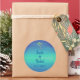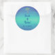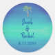 Sticker Rond Palme tropicale Muté Bleu Vert Plage Mariage Océan