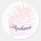 Sticker Rond Palmier Motifs Rose Tropicaux Nom Personnalisé