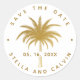 Élégant mariage de palmier d'or enregistrer la date ronde autocollant. Pour une personnalisation plus avancée de cette conception, cliquez sur le lien "customiser plus loin".
