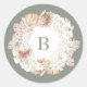 Sticker Pampas Wreath Moss Sage Vert Monogramme Simple Mariage Classic Round Sticker