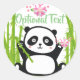 Sticker Rond Panda heureux avec bambou et fleurs de cerisiers