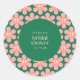 Sticker Rond Panneau de Paix Hippie Retro Fleur Vert Rose Douch