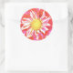 Sticker Rond Papier dahlia rayé rouge et blanc corail