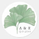 Autocollant Rond Classique Monogramme de Mariage à l'Aquarelle avec Arbre Ginkgo et Verdure Minimaliste