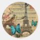 Sticker Rond Papillon bleu Robin nid d'oiseau Paris Tour Eiffel
