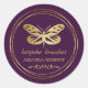 Sticker moderne et élégant avec papillon doré dans un cadre circulaire avec défilement décoratif en dessous sur un arrière - plan violet foncé. La couleur arrière - plan peut être modifiée
