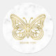 Sticker Rond Papillon géométrique Marbre blanc et or