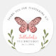 Sticker Rond Papillon rose mou Filles Merci fête d'anniversaire