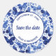 Peinture à papillon bleu et blanc Indigo. Superbe coordination Save the Date stickers comme un rappel pratique pour vos invités. Modifiez le texte de votre célébration.