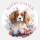 " Happy Pâques " autocollants avec une aquarelle Cavalier King Charles avec des fleurs et des oeufs au chocolat de Pâques. Personnalisable .