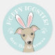 Sticker Rond Pâques Italien Greyhhound Chien mignonne Lapin ore