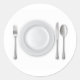 Ce design est un cadre de table. Il y a une assiette blanche et puis de chaque côté, des couverts sont posés sur une serviette blanche. Ce design de table semble superbe. Parfait pour vous-même ou comme cadeau