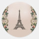 Sticker Rond Paris Rose Vignes Rose Pink Tour Eiffel Élégant