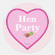 Stickers pour vos filles de fête de poules. Grand coeur d'amour clair et rose foncé avec lettrage blanc lire Hen Party. En dessous, un cocktail avec un cocktail rouge. L'arrière - plan est rose avec de minuscules pois blancs.