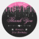 Sticker Rond Parties scintillant à goutte noire et rose Anniver