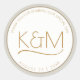 Cet ensemble de design mariage, avec son motif abstrait d'ondulations fluides et de veines d'or scintillant, rappelle les formations rocheuses et les gemmes étincelantes. La palette de couleurs neutres dans les tons du champagne à la pierre à savon ajoute à l'attrait. L'autocollant de coordination de faveur montré ici a une bordure en pierre et l'arrière - plan en ivoire avec un modèle pour ajouter facilement un message de remerciement, vos initiales et la date du mariage. Recherchez ID903 pour voir d'autres choix de couleurs et coordonner des pièces pour cette collection de mariages unique.