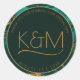 Cet ensemble de design mariage, avec son motif abstrait d'ondulations fluides et de veines d'or scintillant, rappelle les formations rocheuses et les gemmes étincelantes. La palette de couleurs à bijoux dans les tons vert émeraude ajoute à l'attrait. L'autocollant de faveur montré ici a une bordure abstraite et un arrière - plan vert foncé avec un modèle pour ajouter facilement un message de remerciement, vos initiales et la date du mariage. Recherchez ID903 pour voir d'autres choix de couleurs et coordonner des pièces pour cette collection de mariages unique.