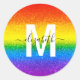 Ajoutez cet autocollant LGBT chic personnalisé à vos mailings et à vos métiers pour montrer votre soutien. La fausse parties scintillant rainbow striped design comprend des tons de rouge, d'orange, de jaune, de vert, de bleu et de violet avec un monogramme initial en blanc et nom dans le script noir moderne pour vous personnaliser. Montre ta fierté !