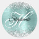 Créez vos propres autocollants de fête monogrammed. Fille fausse parties scintillant argent brillant sur un faux bleu turquoise turquoise style métallique sombre foil. Customisez les styles de police pour créer votre propre sceau d'enveloppe ou design autocollant pour sa célébration spéciale.