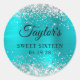 Créez votre propre Sweet 16 anniversaire de fête préférée autocollants. Parties scintillant en argent brillant faux filé sur un art numérique en acier inoxydable style bleu aqua. Customisez les styles de police pour créer votre propre design d'autocollant de faveur pour sa célébration spéciale. Une calligraphie classique et élégante associée à une police serif casquette.