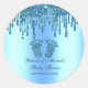Sticker Rond Parties scintillant Bleu bébé pieds Baby shower
