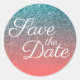 Turquoise fausse photo de parties scintillant couplée à une superposition de corail ombre. Faux glam parties scintillant turquoise et coral ombre enregistrer les autocollants de date. Le texte "enregistrer la date" est dans une calligraphie blanche moderne. Masquer ou supprimer la photo de parties scintillant d'un arrière - plan couleur solide.
