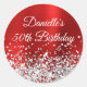 Sticker Rond Parties scintillant d'argent et huile rouge 50e an