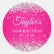 Créez votre propre fête de 50e anniversaire en faveur des autocollants. Fille faux argent brillant parties scintillant sur un arrière - plan fuchsia rose chaud. Customisez les styles de police pour créer votre propre design d'autocollant de faveur pour sa célébration spéciale. Une calligraphie classique et élégante associée à une police serif casquette.