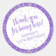 Sticker Rond Parties scintillant d'argent violet Confetti Merci