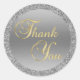Sticker Rond Parties scintillant de Merci en or d'argent