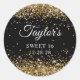 Sticker Rond Parties scintillant d'or Black Sweet 16