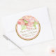 Sticker Rond Parties scintillant d'or bleu Aquarelle Rose Bouqu