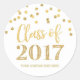 Classe de nom personnalisé de 2017 autocollants de graduation avec motif de confettis or glamour et texte de style lettré à la main.