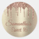 Cet autocollant chic moderne est parfait pour les anniversaires ! Ce design présente une texture brillante de parties scintillant, or rose avec typographie de script. Personnalisez avec un nom !