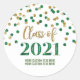 Classe de nom personnalisé de 2021 autocollants de graduation avec motif de confetti en or et vert.