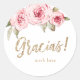 Faux or scintillant parties scintillant "gracias" script et rose vif floral, élégant et élégant, grand customisé merci pour les autocollants.