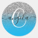 Sticker Rond Parties scintillant en argent Sky Blue Ombre Monog