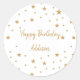 Parties scintillant Gold Star personnalisée Happy Anniversaire Classic Round Sticker. L'autocollant simple or anniversaire est moderne girly chic et a parties scintillant or brillant. Il s'agit d'un design moderne minimaliste simple et motif. Les étoiles brillantes jaune blanc sont à la mode dorée. Fournitures personnalisées pour les anniversaires. Joli autocollant pour elle. Vous pouvez ajouter vos propres informations et les rendre personnelles!