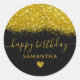 Sticker Rond Parties scintillant Noir Et Or Joyeux Anniversaire