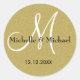 Sticker Rond Parties scintillant Or Monogramme De Mariée Et De