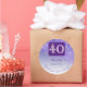 Sticker Rond Parties scintillant pourpre tombante, 40e annivers