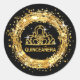 Sticker Rond Parties scintillant Quinceanera Noir et Or Tiara