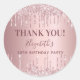 Un autocollant pour une fête d'anniversaire girly et glamour de 50e (ou tout âge). Un rose poussiéreux, un faux arrière - plan rose à l'apparence métallique avec des gouttes de parties scintillant faux, la peinture goutte à goutte. Le texte : Merci. Personnalisez et ajoutez le nom et l'âge 50. Le nom est écrit avec un script de style moderne écrit à la main.