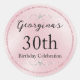 Ces étiquettes autocollants personnalisés ont un design glamour. Une parties scintillant brillante et fausse rose encadre l'autocollant. L'arrière - plan est un design brillant, doux en feuille rose. Un exemple de nom et d'anniversaire sont imprimés dans le centre, que vous pouvez personnaliser pour inclure votre propre nom personnalisé, le titre de l'événement ou tout autre texte. Les diamants accentuent les parties supérieure et inférieure de la zone de texte. Il est parfait pour un anniversaire, une douche nuptiale ou tout autre événement spécial.