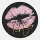 Sticker Rond Parties scintillant rose lèvres sur noir - Tester